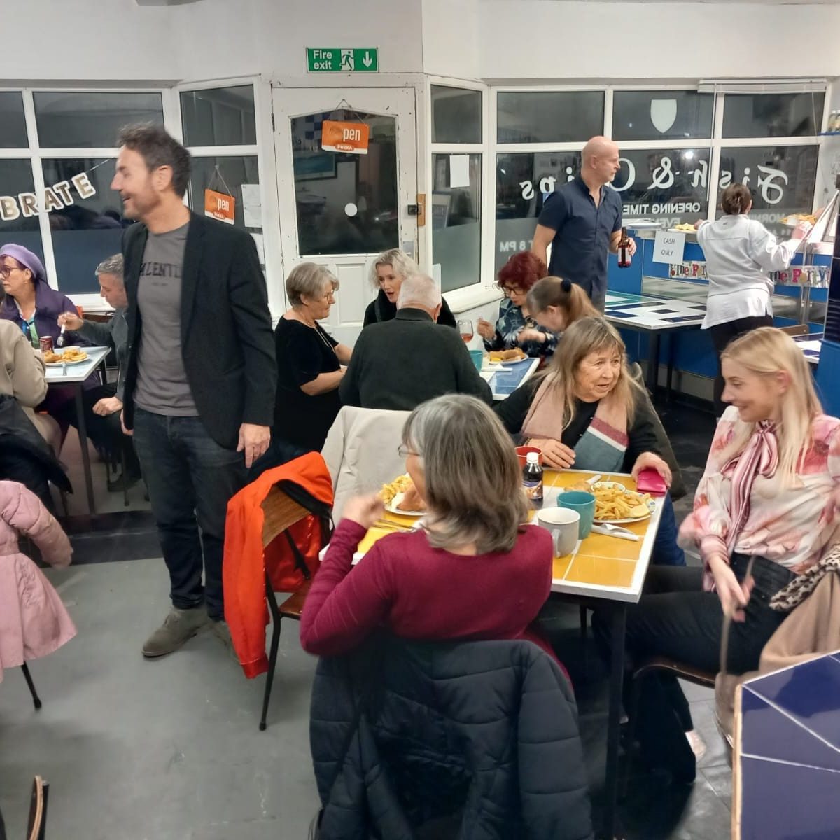 This film business is all glamour! We all met in the evening for our own premier of the film Lessons Learnt in a lovely fish & chip shop in Eastney. Very impressed. The bloopers afterwards were very funny. 2 birthdays with cake and a sad goodbye to Effe who is going back to America.